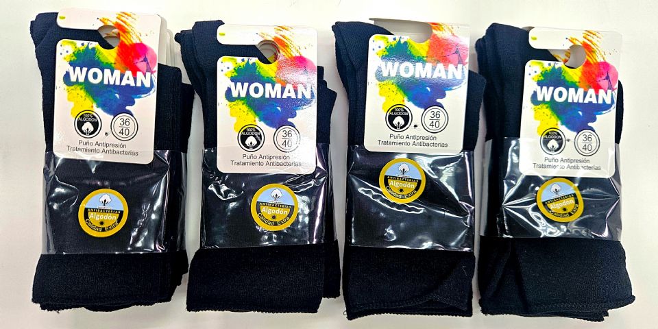 Calcetín mujer básico, color negro. Puño confort, no aprieta
